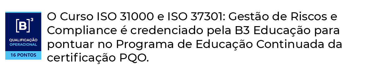 O objetivo do curso é apresentar o processo de Avaliação de Riscos para uma gestão efetiva de Compliance baseado na ISO 31000 e ISO 37301.